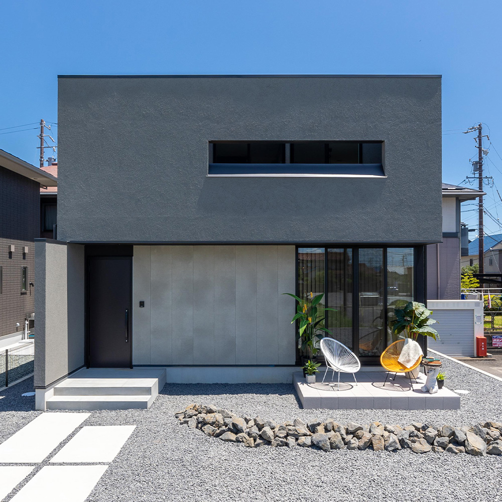デザインのすべてがトータルコーディネートされたお家。シンプルでありながら立体感のあるスタイリッシュな外観が特徴的なファサード。