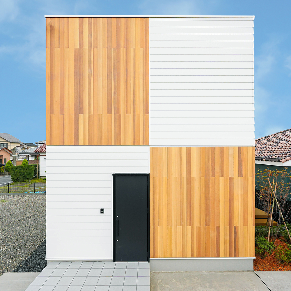 外壁を縦貼りと横貼り交互に組み合わせることでシンプルな外観の中にも立体感を演出しています。